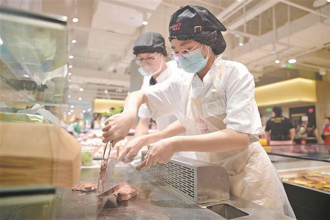 五缘湾天虹超市将“烟火市集”升级为顾客的“星级家庭后厨”网上配资公司。(记者 庄筱婧 摄)