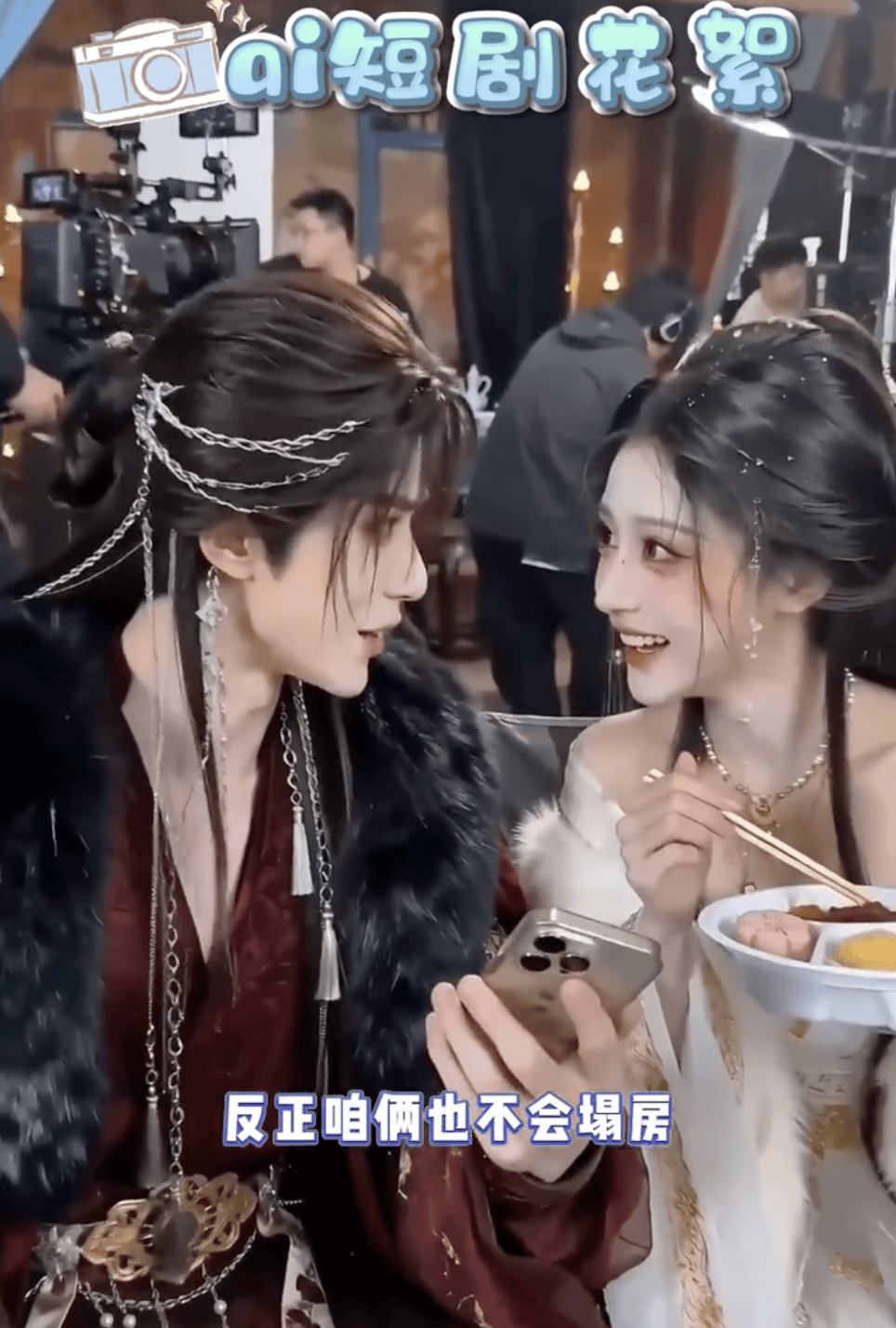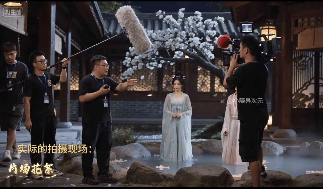 更魔幻的是,这些AI演员不仅有戏拍,居然还有AI出来的幕后花絮。
