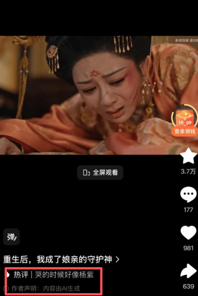 3月20日,有网友发现在红果AI短剧《重生后,我成了娘亲的守护神》中,居然出现了一张“神似”杨紫的脸。