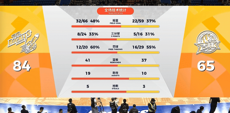 虎扑04月20日讯 CBA 常规赛,吉林与宁波的较量落下帷幕。吉林全队进攻端手感冰凉,外线投射失准、内线终结效率低迷,全场仅得到65分,刷新本赛季单场得分新低。最终吉林以65-84不敌宁波,攻防两端的低迷表现让球队无力扭转战局。