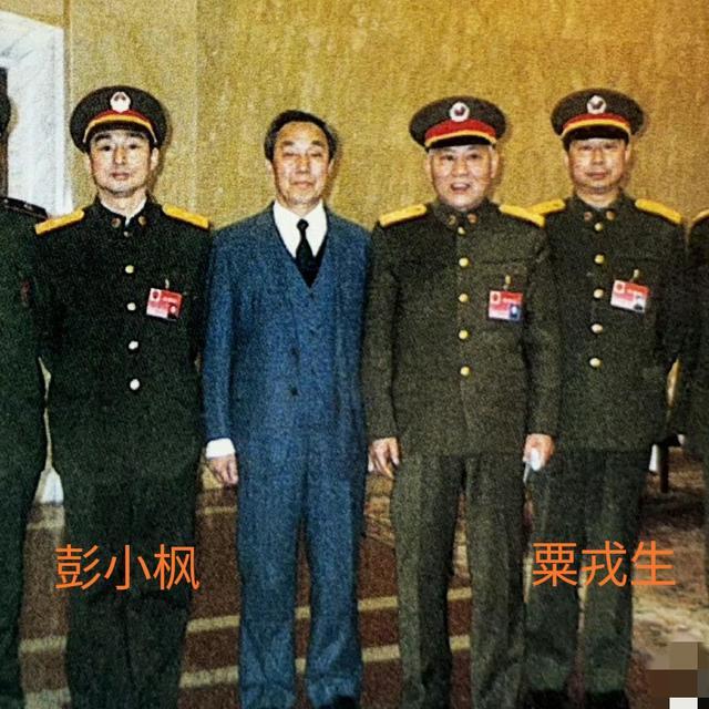 我们现在看到的这一张照片拍摄于1998年,正值国家铭记革命先烈、传承红色精神的重要时期。画面当中并肩站立的两位中年军人,身份格外特殊,分别是抗日名将彭雪枫的亲生儿子彭小枫,以及开国大将粟裕的长子粟戎生。